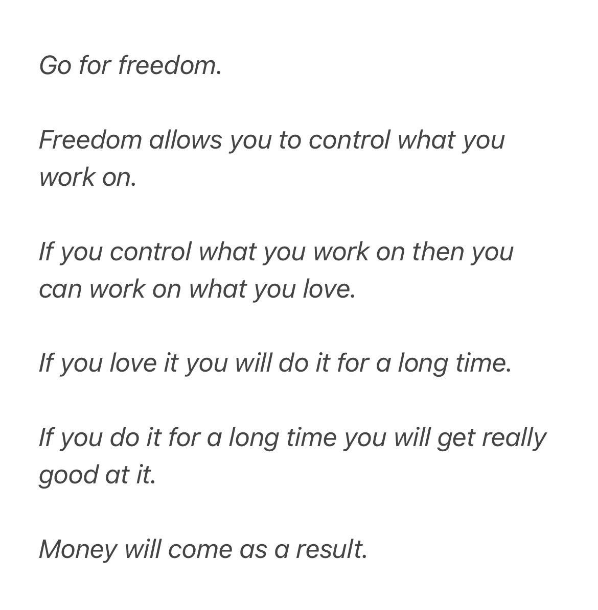 I often struggle with balancing freedom (upside, but higher risk) and stability (income and safety). By zooming out and looking at things in the long run, Sam suggests it doesnât have to be one or the other.